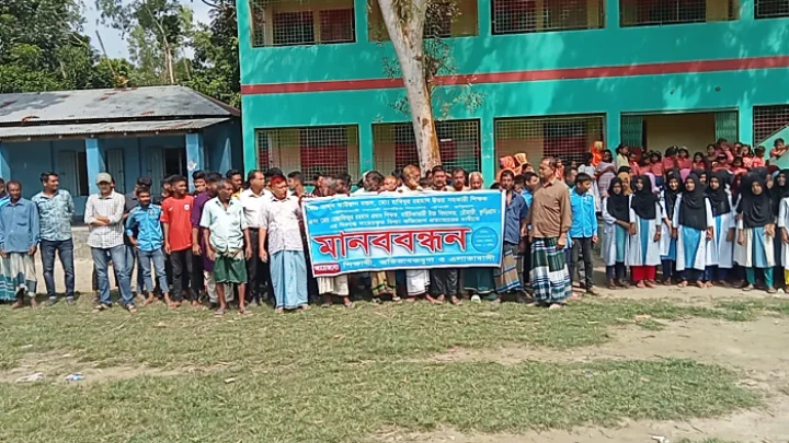 রৌমারীতে পাল্টাপাল্টি মানববন্ধন, চাঞ্চল্য এলাকায়
