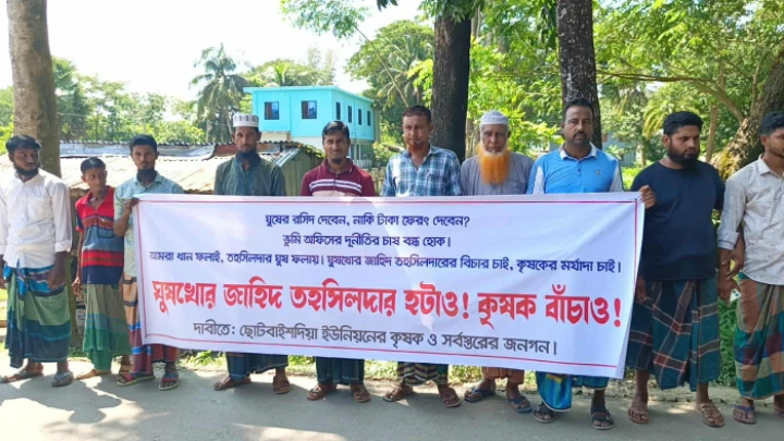 মানববন্ধনে বক্তারা দুর্নীতিবাজ তহসিলদারের বিরুদ্ধে দ্রুত তদন্ত ও প্রশাসনিক ব্যবস্থা নেওয়ার দাবি জানান। এতে স্থানীয় কৃষক, ব্যবসায়ীসহ বিভিন্ন শ্রেণি-পেশার মানুষ অংশ নেন।