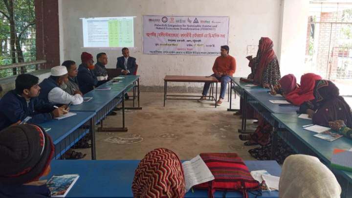 ফিশনেট প্রল্পের আওতায় বেসরকারী উন্নয়ন সংস্থা ‘উত্তরন’ এর বাস্তবায়নে ওসান গ্রান্টস প্রোগ্রাম এবং ইউকে ইন্টারন্যাশনাল ডেভেলপমেন্টের আর্থিক সহেযোগীতায় ১৫ জানুয়ারী ’২৬ রোজ বৃহসপতিবার সকাল ১০টায় ১৫ জন সদস্যের উপস্থিতিতে সভা অনুষ্ঠিত হয়।
