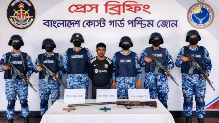 সুন্দরবনে কোস্ট গার্ডের অভিযানে অস্ত্র ও গোলাবারুদসহ কুখ্যাত ডাকাত ছোট সুমন বাহিনীর ১ সক্রিয় সদস্য আটক।